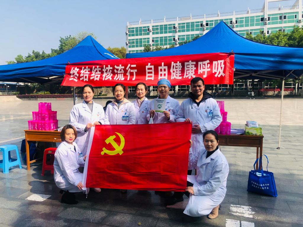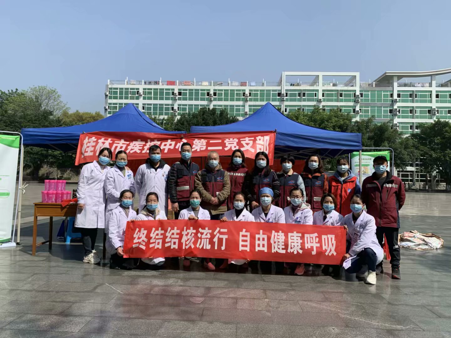 第26个世界防治结核病日到来之际,我校卫生所医务人员联合桂林市疾控中心第二党支部,在青春广场开展世界结核病防治日“终结结核病流行 ,自由健康呼吸”主题宣传活动。卫生所全体党员参加此次活动。