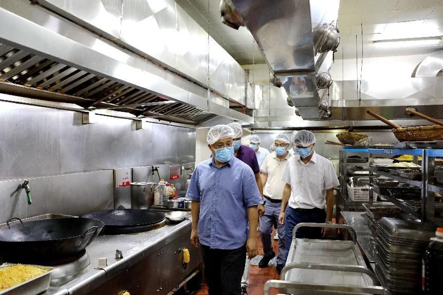 在检查过程中,吴尽昭认真听取了当前学校食堂供餐工作情况的介绍,细致详细了解了学校食堂米、面、油及干杂配料等大宗物资的仓储及采购情况,并对食堂清洗间、切配间、面点间、蒸饭间、烹饪间等后厨操作间的食品卫生安全、消防安全等进行了深入检查。