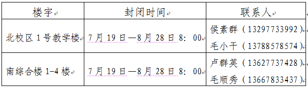 暑假期间24小时报修电话:5862540、2253057;