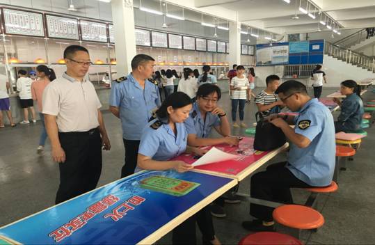 10月9日,桂林市食品药品监督管理局领导一行4人莅临我校检查食堂视察指导安全卫生管理工作。pa集团官网刘武定、张肖伟全程陪同参加了检查工作。