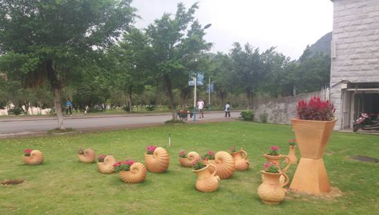 陶瓷艺术花盆点缀校园景观