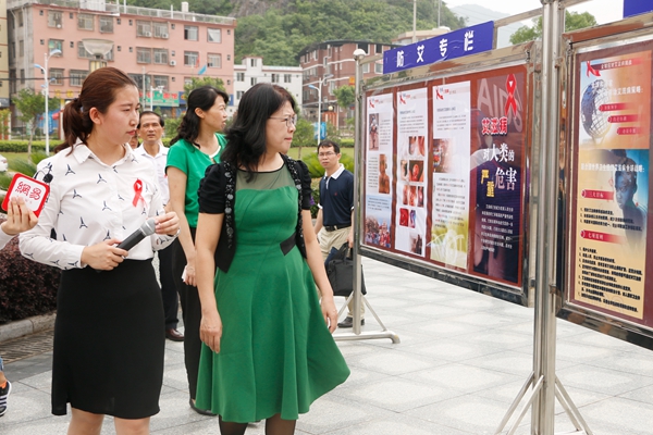 红丝带是对HIV和艾滋病认识的国际符号,启动仪式前,桂航学子为主席台领导嘉宾佩戴上红丝带,邀请大家加入红丝带志愿者的队伍。