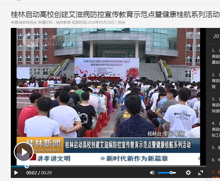 桂林电视台报道5月28日在我校开展的创建艾滋病防控宣传教育示范点暨健康桂航系列活动。详情新闻链接:http://tv.gltvs.com/201805/20180528204647f895485801ac4275_6.shtml?from=singlemessage&isappinstalled=0