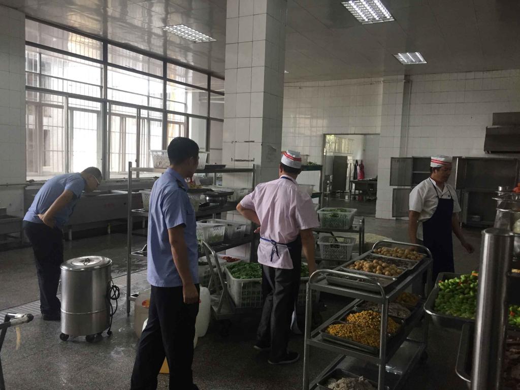 食药局工作人员检查了我校食堂食品卫生工作,仔细查看了食堂操作间的设施设备、食品加工操作流程并深入存储库房,认真检查和询问食用原辅材料质量安全情况,查看餐厨垃圾处理记录情况等。对食品安全管理工作提出了详细的建议。