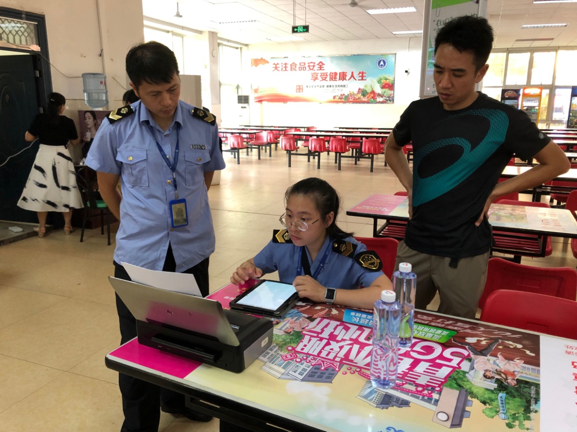 9月10日下午,桂林七星区市场监督管理局一行到我校食堂进行食品卫生安全检查。pa集团官网处长覃宏图、饮食服务科负责人陪同进行检查。