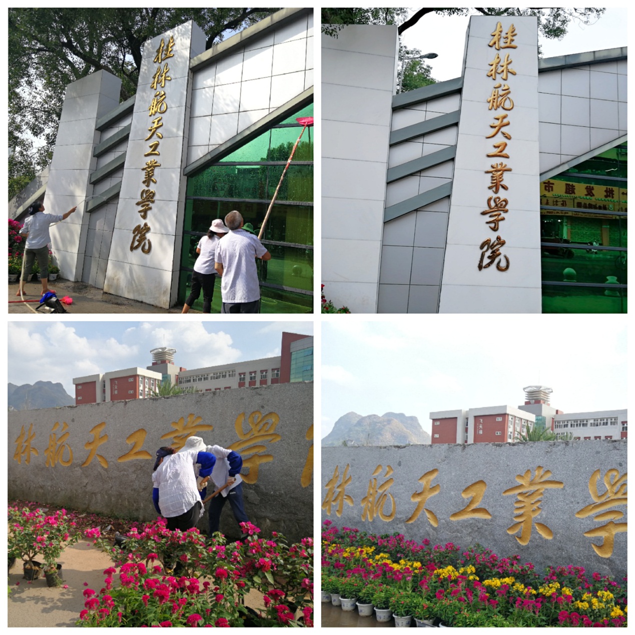 为迎接即将到来的40周年校庆,以更加亮丽的风采喜迎庆典。10月10日,物业管理科组织员工专项清洗南北校区大门。校门是学校重要标志性建筑之一,代表着学校形象。因长期经受日晒雨淋,北校区大门上方金色铝塑字面局部积垢发黑,严重影响美观。为此,在校庆即将来临之际,物业管理科对其进行一次全面清洗。经过清洗大门焕然一新。