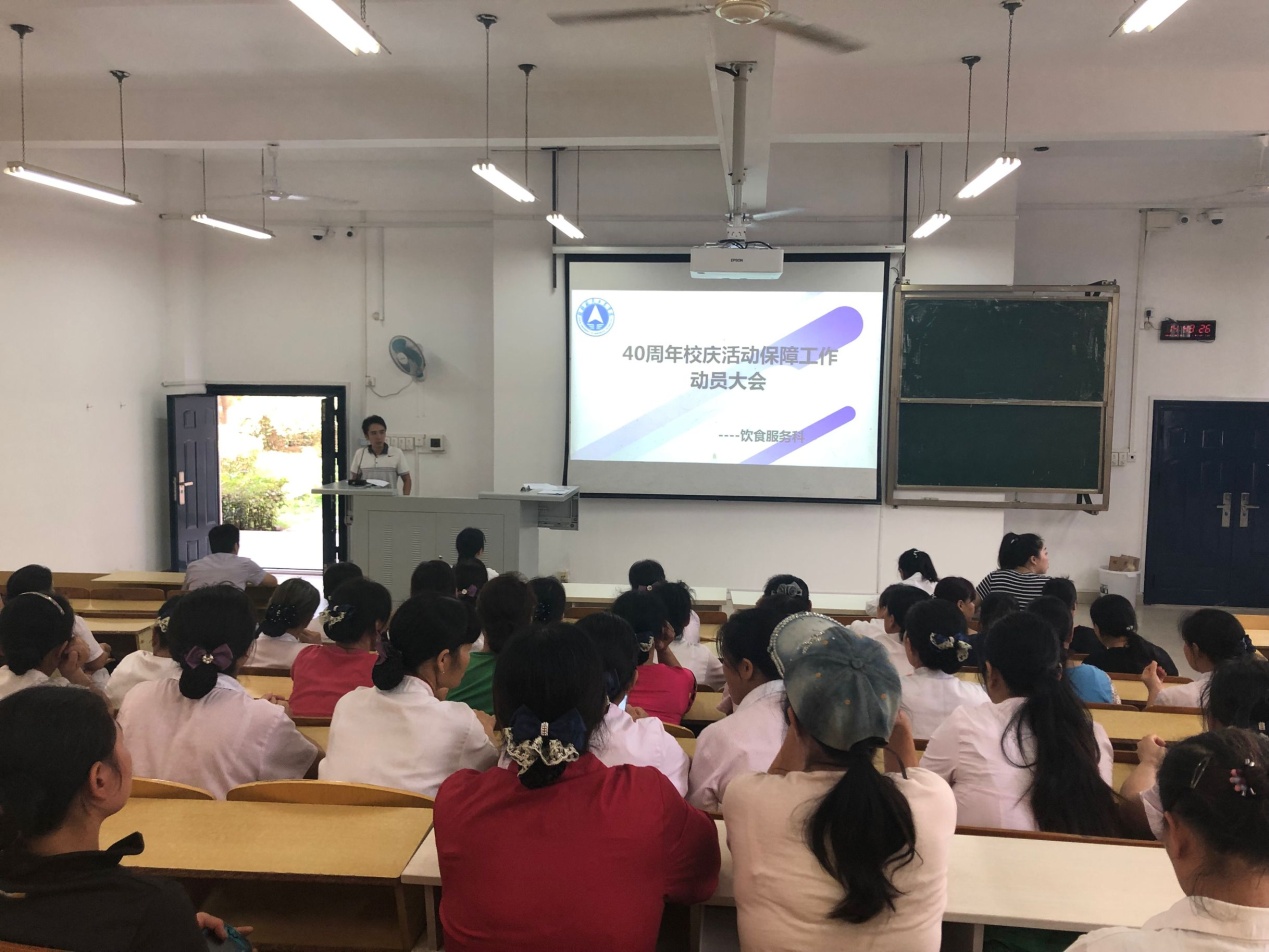 10月16日下午,饮食服务科在明志楼1123教室召开40周年校庆活动保障工作动员大会,后勤处副处长姚科翼,饮食服务科相关负责人,以及食堂全体员工参加了本次会议。