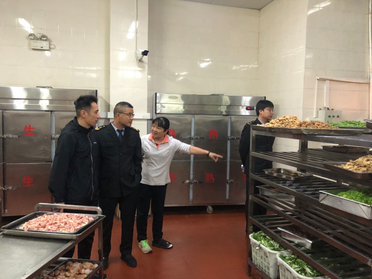 检查过程中,李同标一行深入食堂一线,对学校食堂的操作间、加工间、库房等地方进行全方位的检查指导,认真查阅了学校食品安全规章制度、消杀记录、晨检记录、员工健康证准入,并对食品留样、加工过程、操作规范等方面进行详细指导。