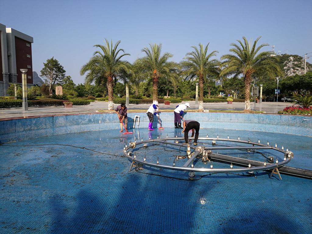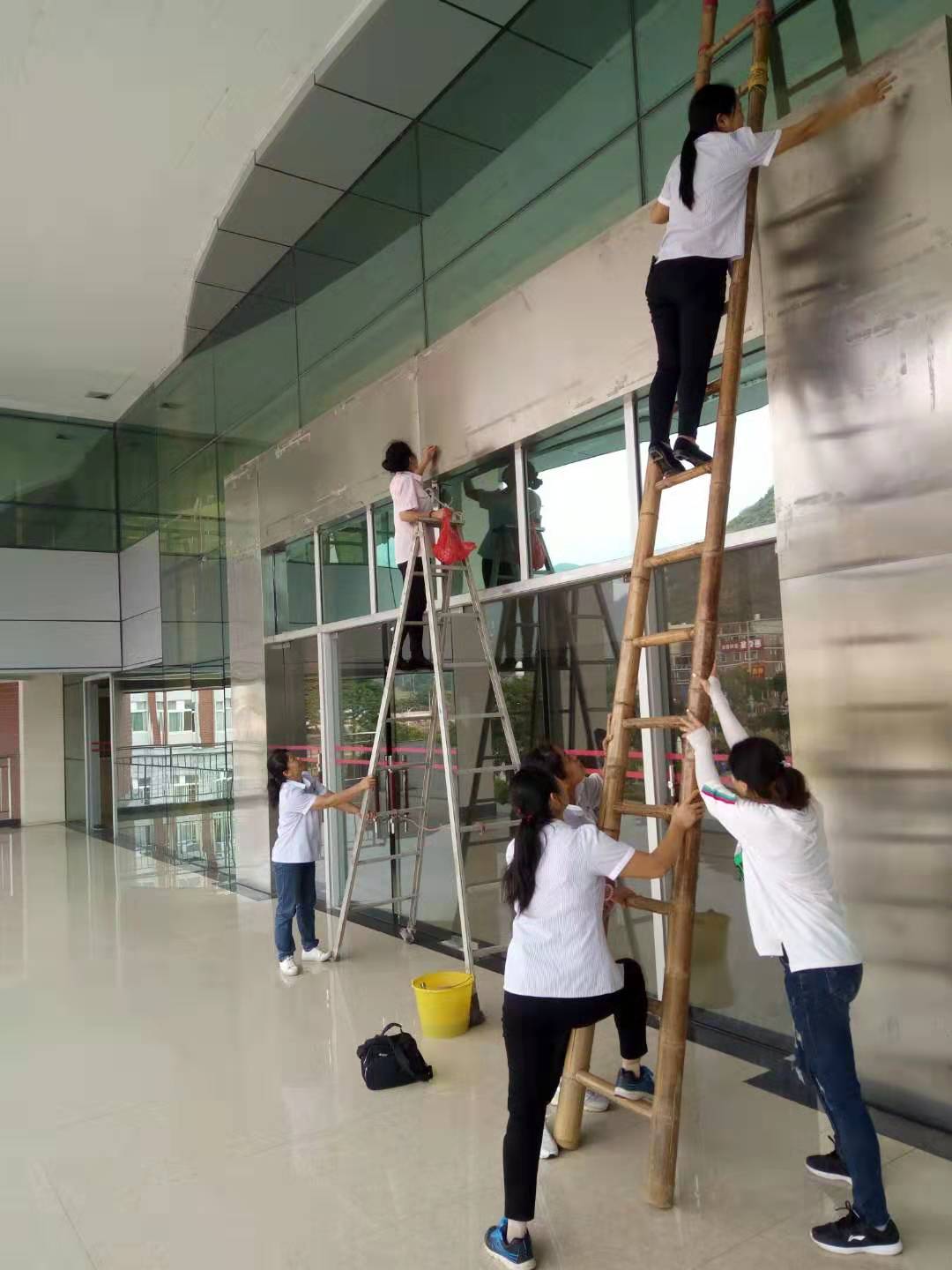 彻底清扫,注重保洁。校庆前夕,组织员工对全校范围内的废弃桌子、路边石头、杂物等进行专项清理,共清运了20多斗车;对路边70多个垃圾箱及其周边进行了清洗,并更换了10个旧垃圾桶;清除了校园内乱张贴广告约100多平方米;对教学楼所有台阶、门前玻璃及学校大门进行清洗,提升环境整洁美观效果;组织洒水车对南校区主干道进行路面高压冲洗,彻底清洁路面;校庆期间租用了三个移动厕所。