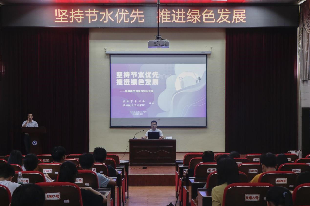 近日,为深入贯彻落实学校节水优先方针,大力营造校园节水文化,进一步提升学生节水意识,pa集团官网邀请桂林市水利综合发展中心副主任刘丹到校走进“桂航大讲坛”,进行校园节水宣传知识讲座。各学院学生代表200多人参加了讲座。