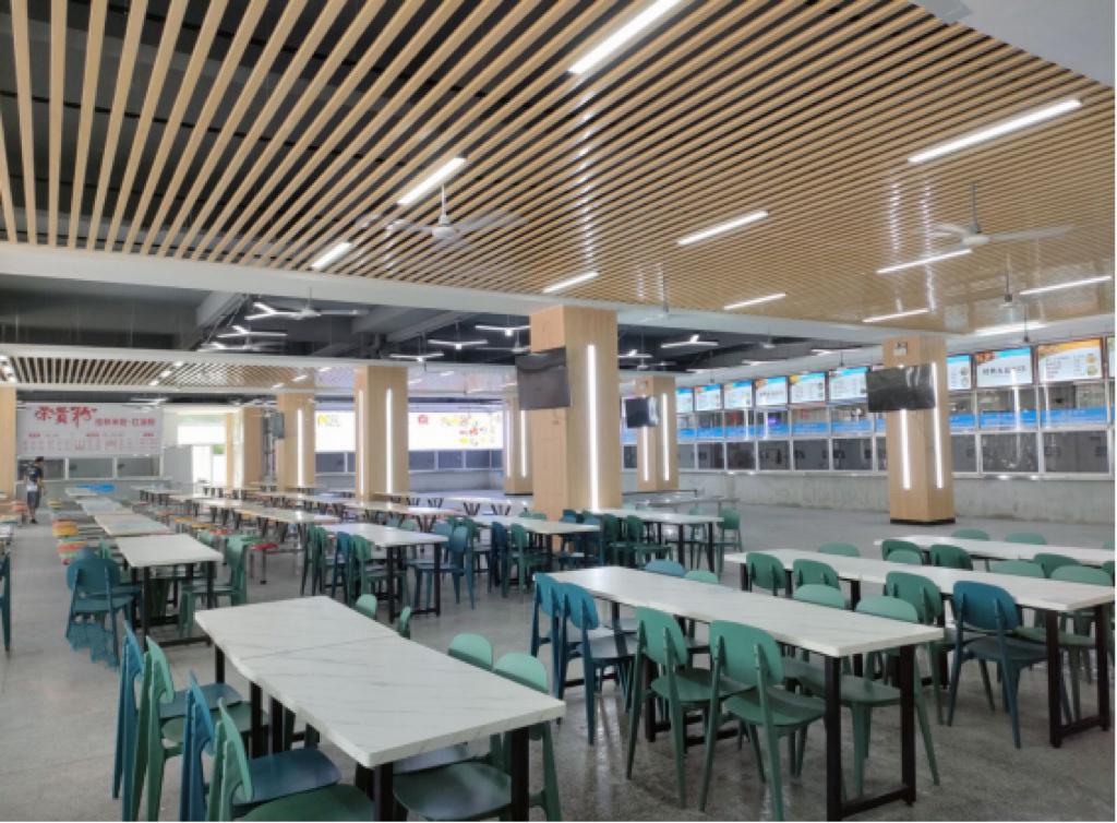 改造后的食堂一楼大厅宽敞明亮,新桌椅与新立柱交相辉映,整体面貌焕然一新,给师生们营造了崭新、舒适的就餐环境。新学期,饮食服务科将继续保障广大师生的饮食安全,努力提供更优质的餐饮保障服务。
