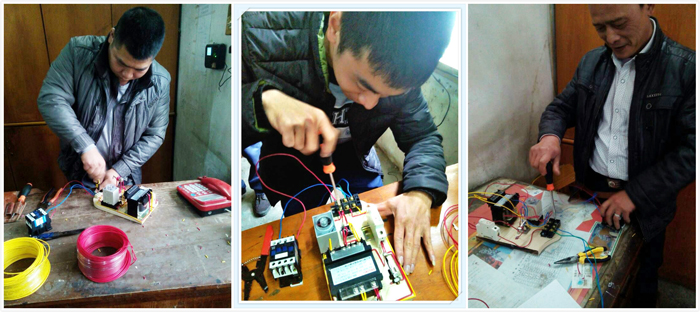 经过20多分钟的激烈比赛,电工师傅们都自信地完成了交流转直流延时控制器的安装,最张经过评委评比,电工张树辉通过十多年扎实丰富的操作经验,夺取第1名。