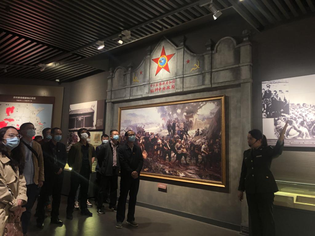 全体党员首先来到红军长征突破湘江渡江指挥部旧址红军堂和渡江码头,读着红军堂前石碑上刻着的《湘江祭文》,瞻仰红军堂内悬挂的湘江战役的历史图片和陈列着的当年战斗时所用的刀、枪和军号,还有红军长征时穿过的军服、布鞋、草鞋以及用过的背包和水壶、油灯、油罐……聆听解说员现场讲述湘江岸边红军将士们浴血奋战的英雄故事,脑海里是湘江江面上的血雾画面和不绝于耳的厮杀声、呐喊声,在场的每个人深深地被红军将士们在湘江战役中展现出的崇高理想信念和惊天动地的革命英雄气概所感染,所震撼。